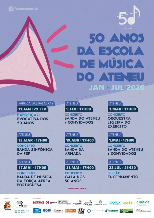Exposição evocativa dos “50 Anos da Escola de Música do Ateneu Artístico Vilafranquense” que se insere num vasto programa cultural que irá decorrer até julho de 2020, e conta com o apoio da Câmara Municipal de Vila Franca de Xira.